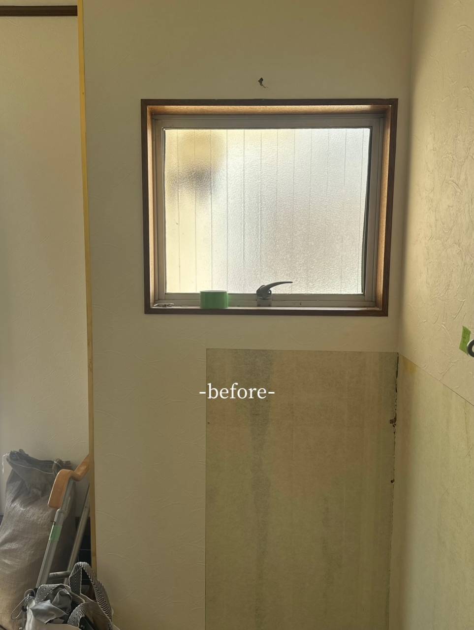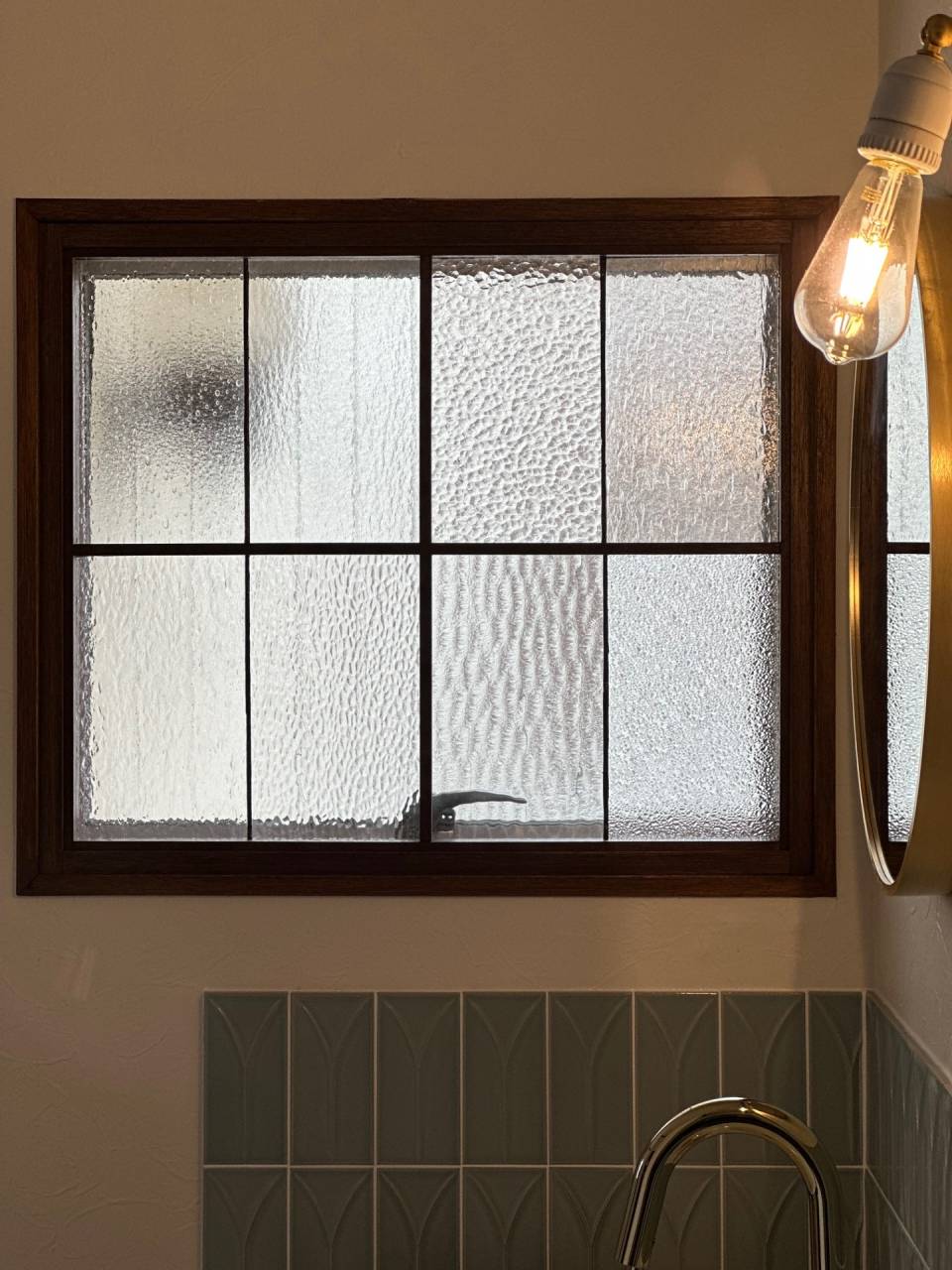 洗面の横にある窓(網入りガラス)が気になる…とのことで、洗面台と一緒に変えることになりました!