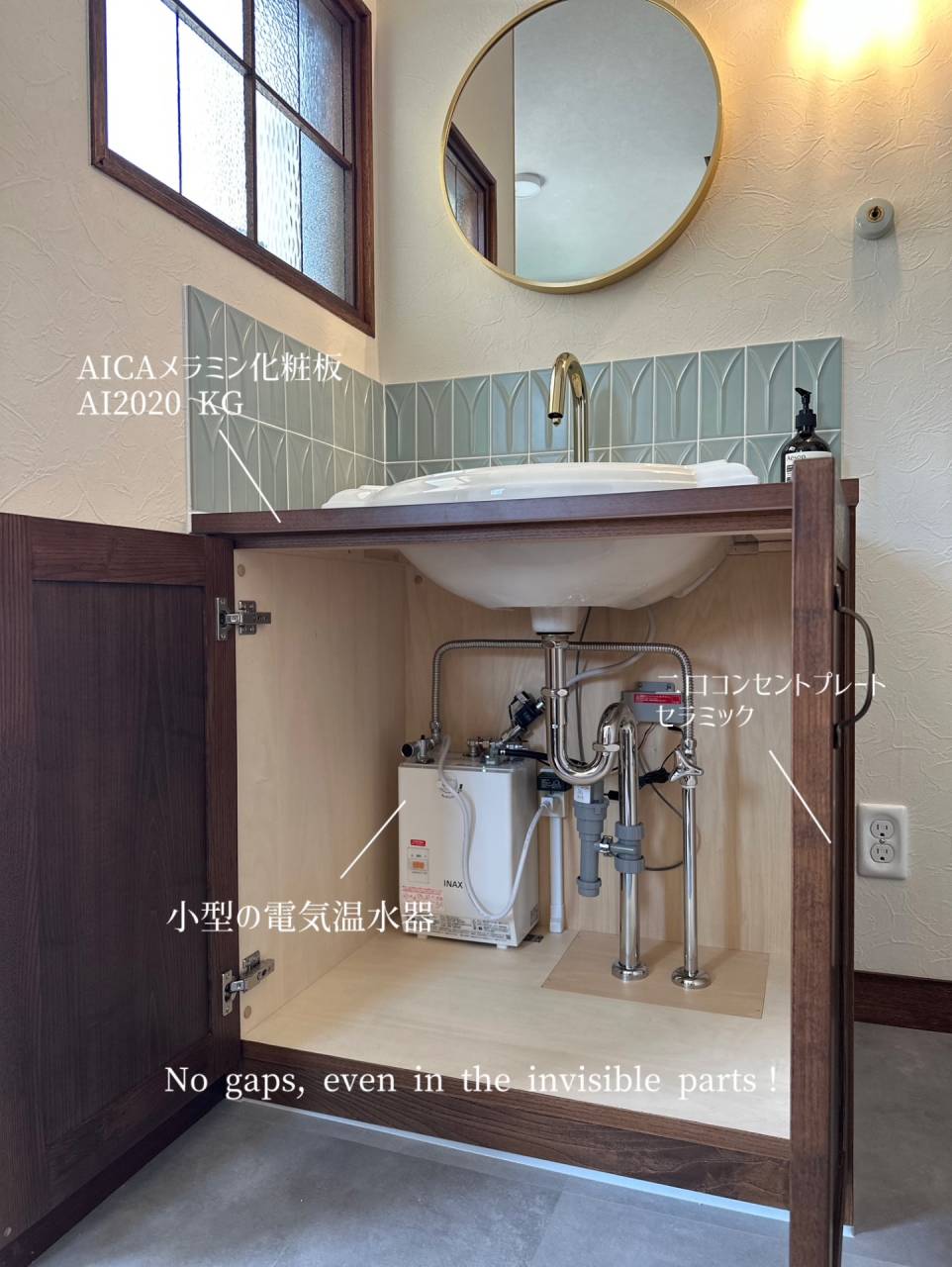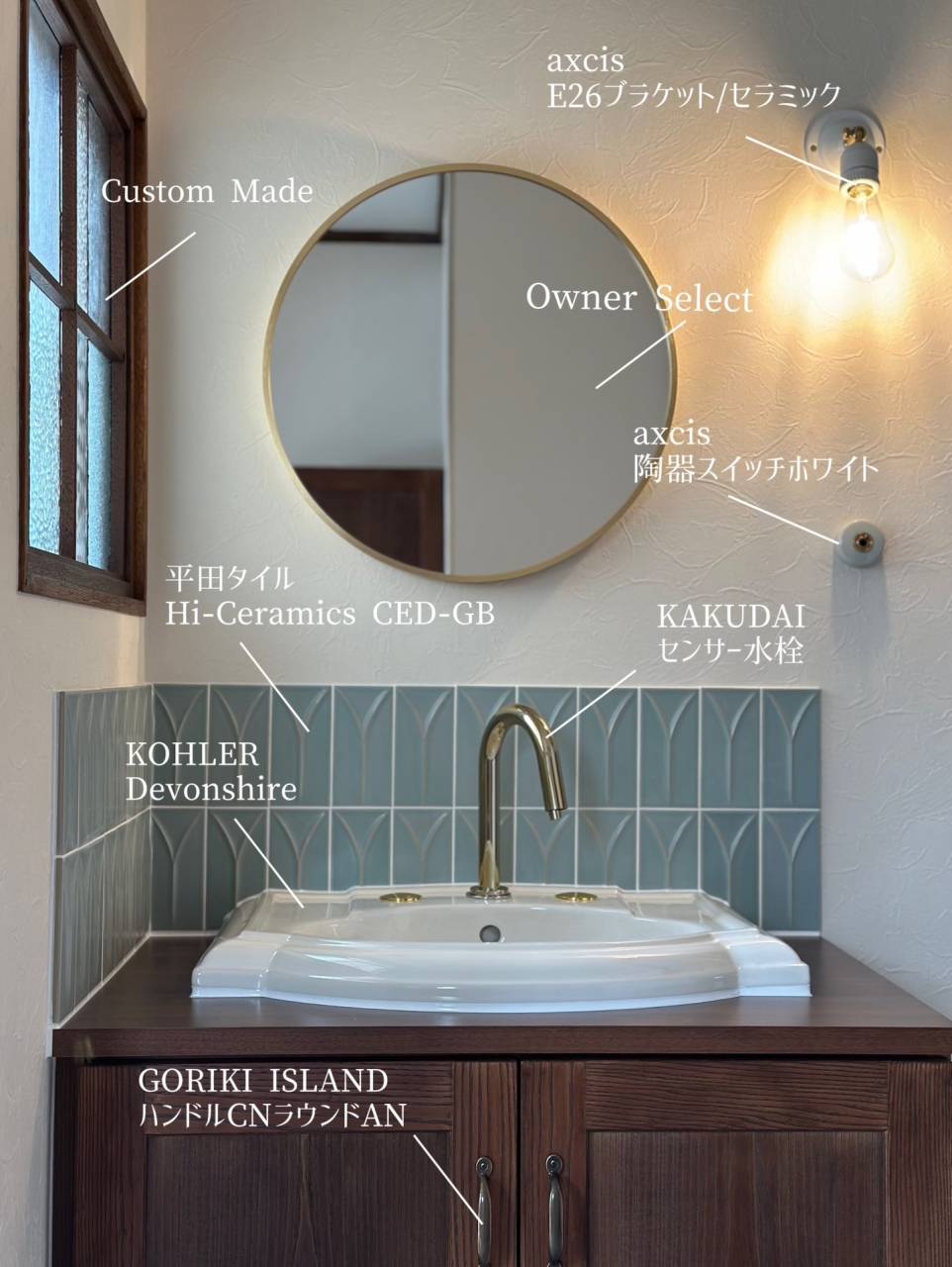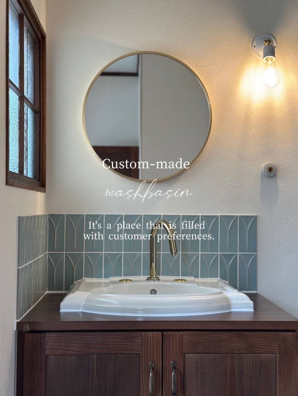 こちらのアイテムに合わせて、洗面台、その他パーツをセレクトしました。陶器で合わせることで、上品にまとまりました✨