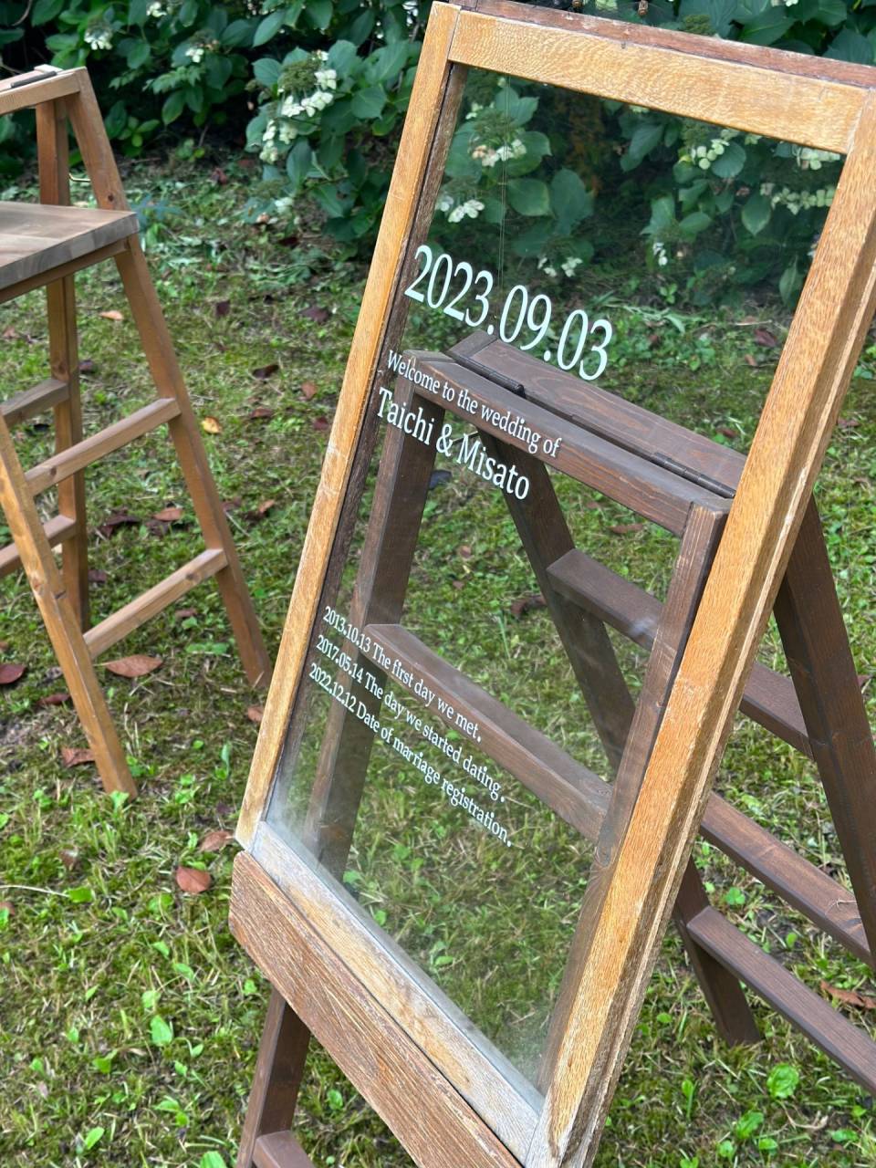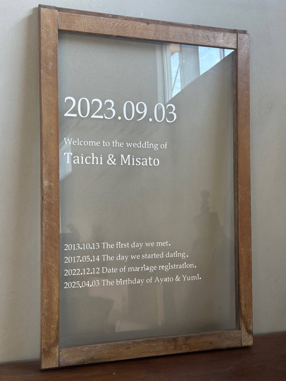 その時に作らせて頂いたウェルカムボードがあるのですが、そこにお二人の記念の日を刻みました。