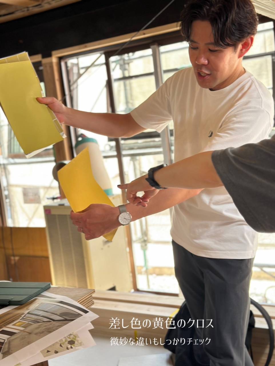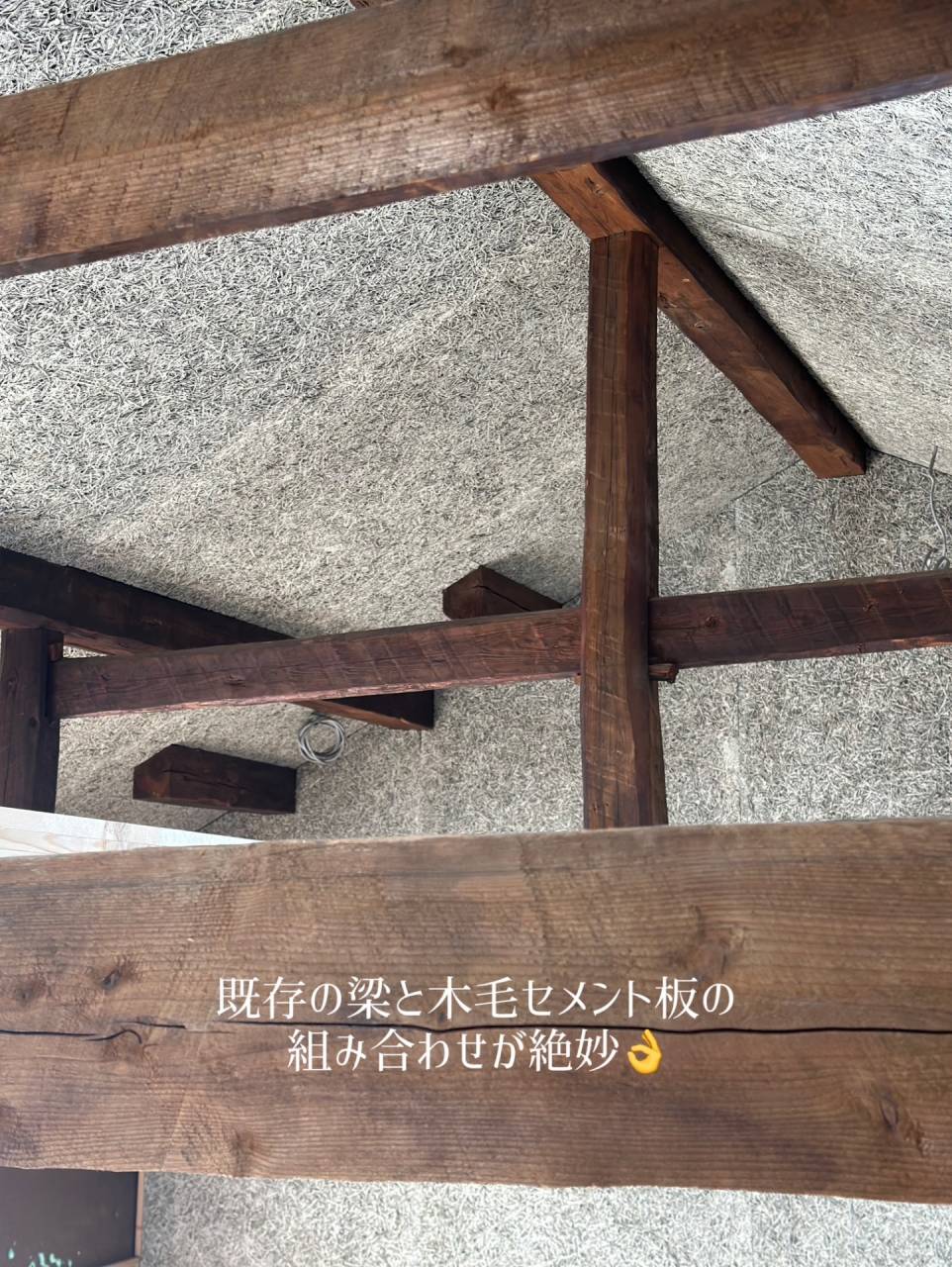 福島で店舗改装ならlean(リアン) 2025/09/19 本日は美容室の現場打ち合わせでした💇 まだまだ暑い日が続きますね💦 今日は、デザイナーの牧野さんと施主の今野さんとの現場打ち合わせでした! 床材や壁紙の材質の確認でわざわざ仙台、東京からお二人がいらっしゃいました💁 美容室の床は、お掃除がしやすく、汚れが取れやすい材質をご希望です! 色も大事! 差し色で入る予定の壁紙の黄色🟡がまたいい味になりそうです♪ 壁材は木毛セメント板を使っています。 木毛セメント板は、木材をリボン状に細長く削り出し、セメントペーストで圧縮成型した建材で、 下地材として調湿、断熱、遮音、吸音などの性能がありますが、最近は仕上げ材として使う建築もよく見かけます! 今回は2階の美容室の壁と天井に使います。 既存の梁などの木部のこげ茶との相性がいいですね♪ そして全体像が見えてきました♪ 9月中には木工事は終わり、10月中旬には完成予定です! 栗城