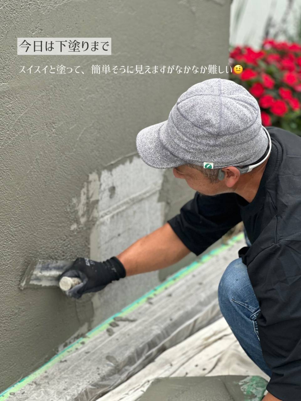 福島で外構工事ならlean(リアン) 2025/10/08 松月堂菓子店様の門柱工事 左官編 今回は二度塗りでムラ感が出る塗り材を使います💁 今日は下塗りになります! 左官の工程は一回で仕上がらないのが大変です! シーラーを塗り、今日は下塗りまで。 そこから一度目の塗り材をつけ、また後日二度目の塗り材を重ねます。 コーナーにもメッシュを入れ、丁寧な作業です🫡 この方が綺麗に仕上がるとのことで、仕上がりが楽しみです! 左官の作業って、スイスイと簡単に塗っているように見えますが、やってみると全然思うようにいきません。 ワークショップで左官体験をした方は「左官屋さんって凄い」と皆さん感じたと思います😉 こちらの町では今週末お祭りがあるそうです♪ お祭り明けにまた作業開始です! プランナー:栗城