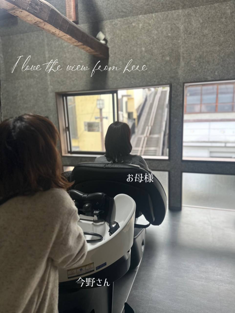福島で店舗改装ならlean(リアン) 2025/10/21 本日は美容室の現場へ💇 シャンプー台が設置されました。 オーナーの今野さんと、お母様でシミュレーション♡ 素敵な構図です!最初のお客様はお母様☺️ 仲良し親子の姿にほっこりです♡ 何度来ても、この階段の眺め好きだなぁ。と思います。 今野さんが、2階に美容室をと決めた理由がわかります。 そして今日、夕暮れの雰囲気も味わうことができました♪なんともノスタルジック! サロンに来た方も、今野さんもここからの眺めが楽しめるんですね〜 足場も外され、次は外部の工事に進みます! 完成が近づいてきました☺️ 栗城 Owner: @konno.konnosayaka Design: @tordimo_spacedesign_office