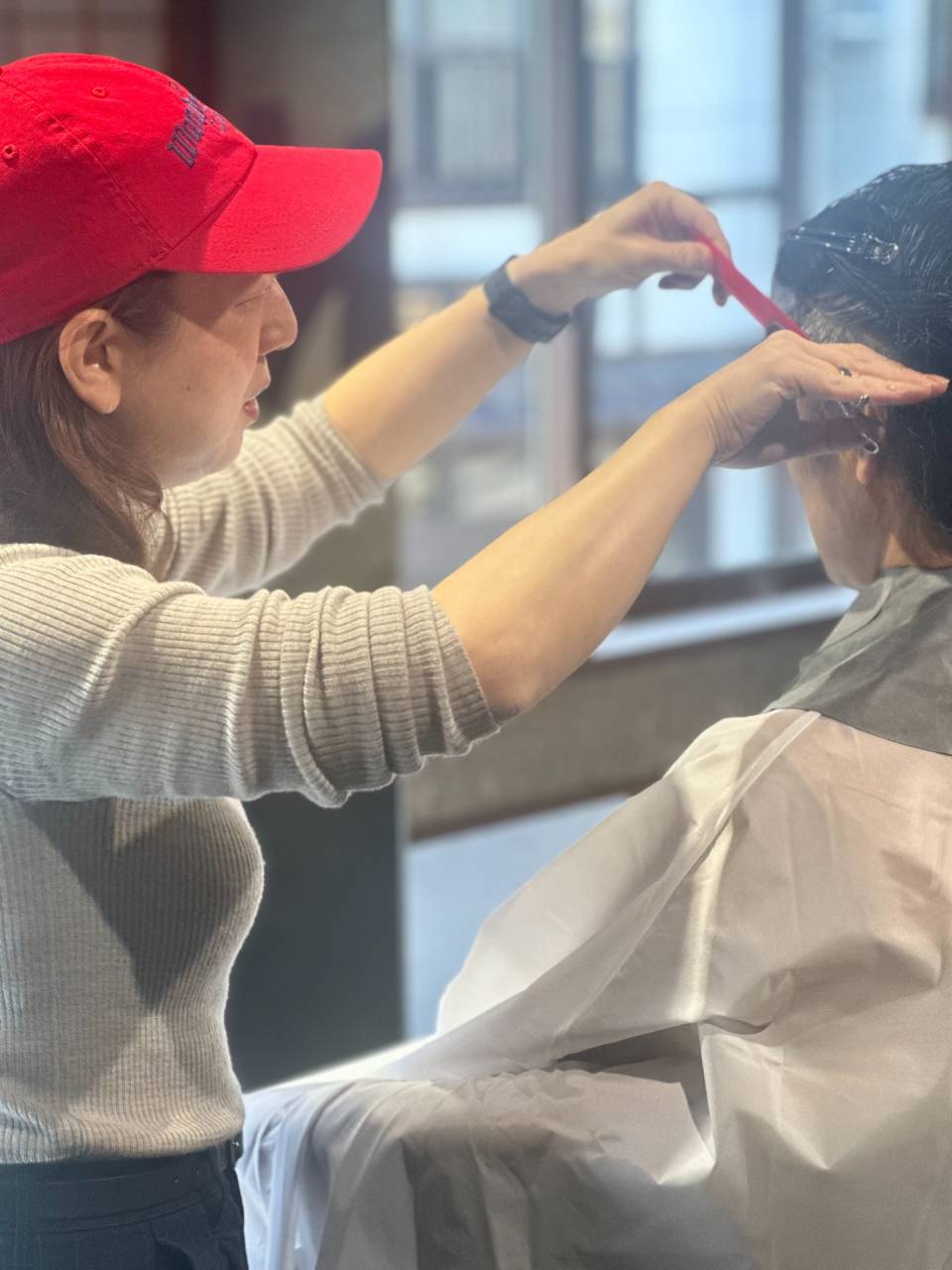 なかなかシャンプーやカットの様子を外側から見ることってないので、なんだか新鮮です。