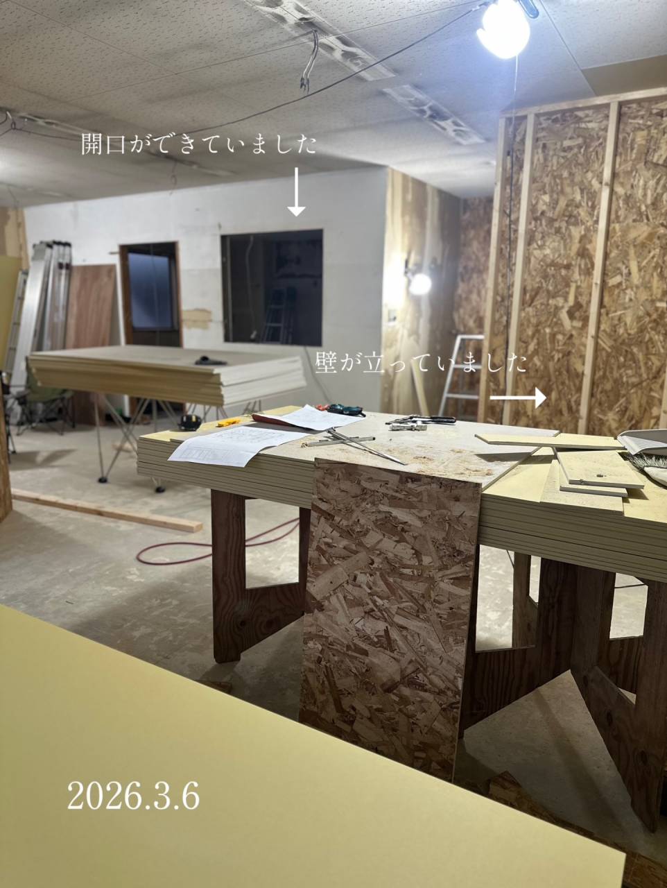 福島で店舗改装ならlean(リアン) 2026/03/06 新しい現場が始まりました👷♂️ 久しぶりの店舗施工になります! こちらはキッチンやお風呂、洗面などの設備アイテムをメインに、リフォームをご提案するショールーム。 設備屋さんとタッグを組んで、やらせていただくことになりました! 先日始まったばかりですが、すでに壁ができていました♪ 早い早い! 実際に壁が立つと、内装や照明、家具のイメージがつきますよね♪ 照明位置の微調整も…まだギリギリ大丈夫でした🤭 場所は宮城県の白石市!白石市の施工は実は2回目。 意外と近いです😊 気軽に入れるショールームになると思いますので、ぜひ覗いてみて下さい♪ プランナー栗城