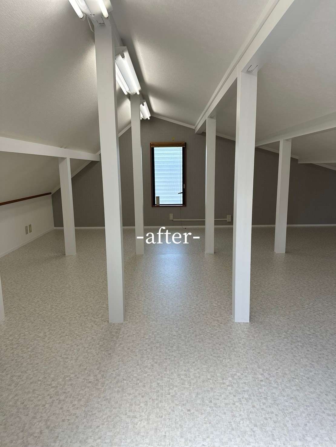 2020年に施工したネイルサロンの小屋裏部分をスクールとして利用することになり、床と壁紙の張替えを行いました。